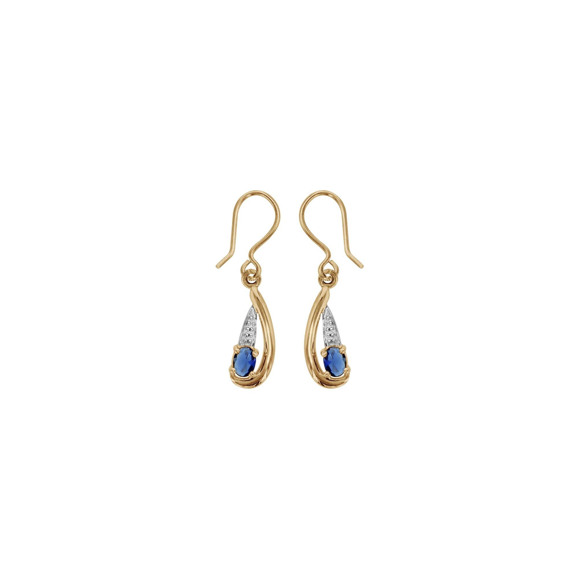Boucles d'oreilles plaqué or crochet pendante pierre bleue synthétique