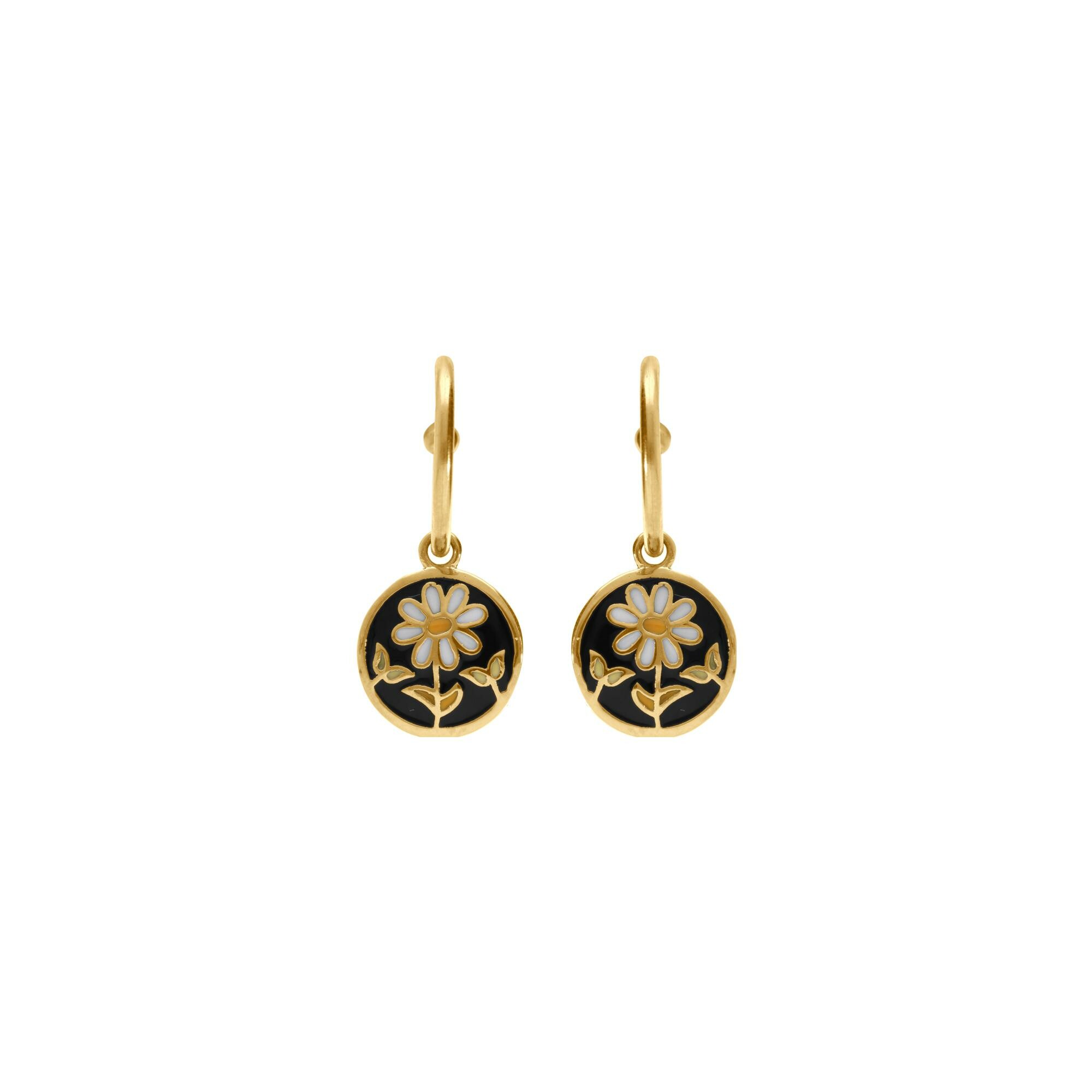 Boucles d'oreilles tige acier doré jaune stella mia ronde résine noire fleur