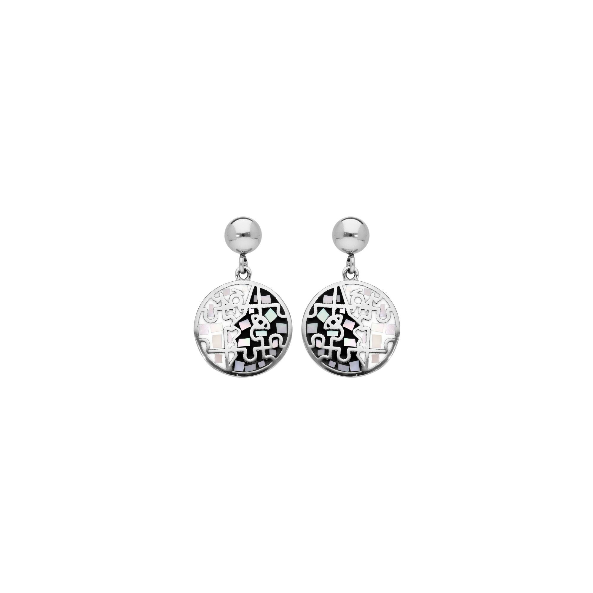 Boucles d'oreilles tige acier stella mia ronde résine noire et blanche et nacre