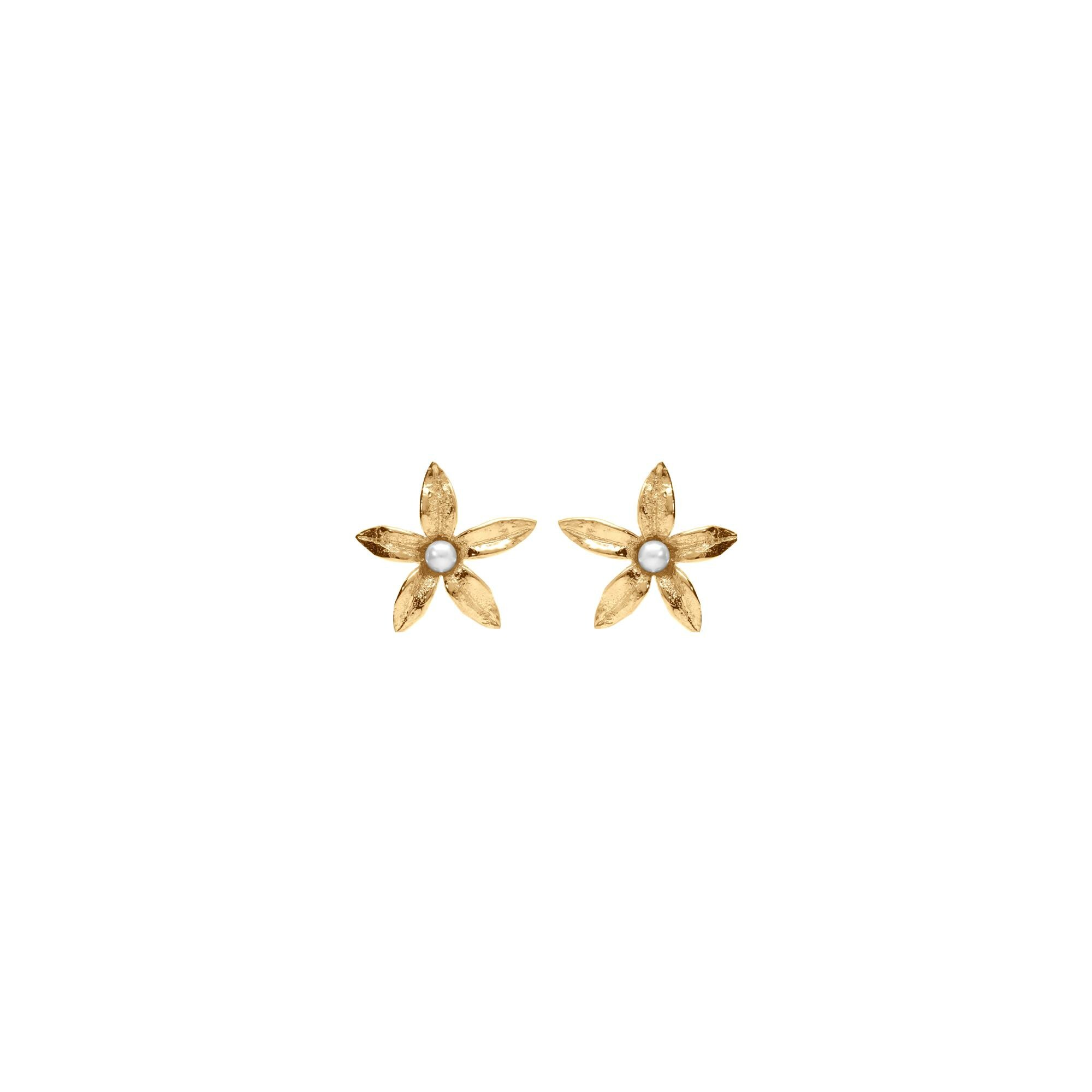 Boucles d'oreilles tige argent doré fleur et perle blanche imitation