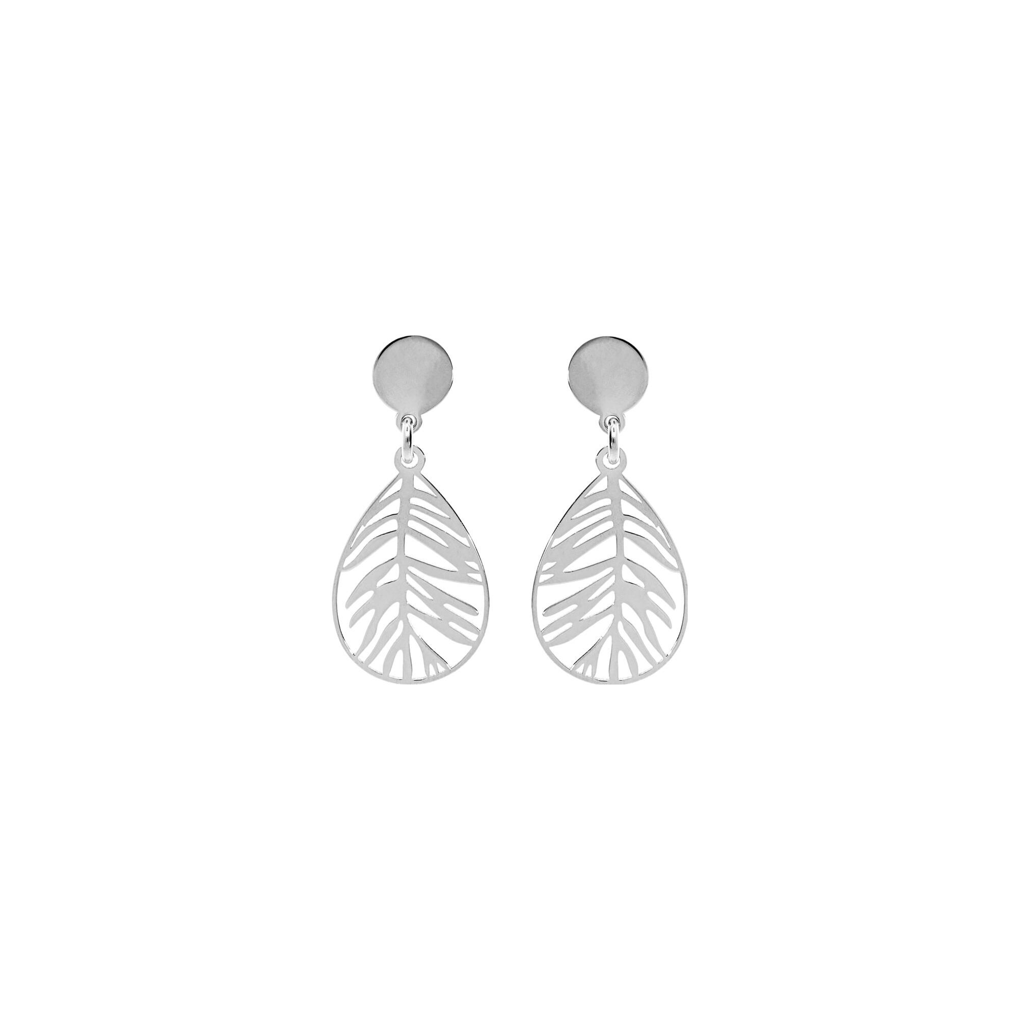 Boucles d'oreilles tige argent rhodié feuillage