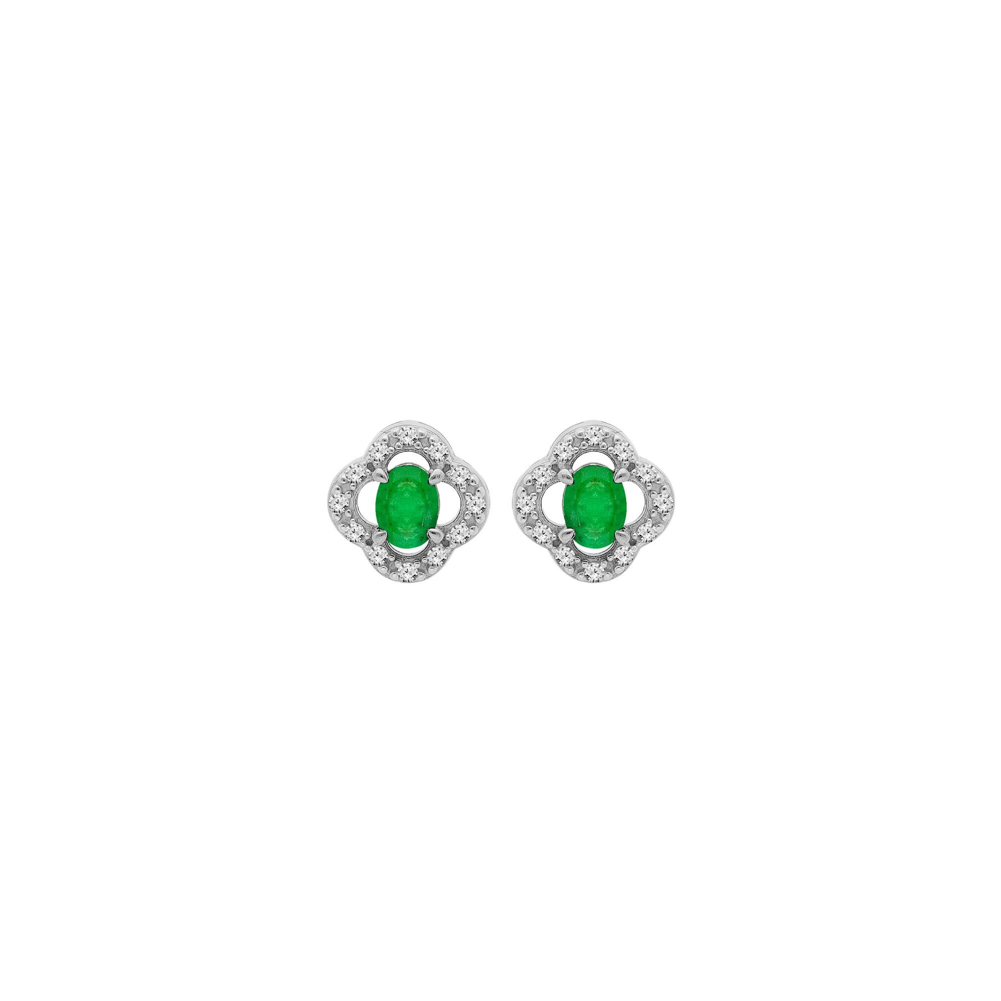 Boucles d'oreilles tige argent rhodié forme fleur emeraude véritable et topazes blanches