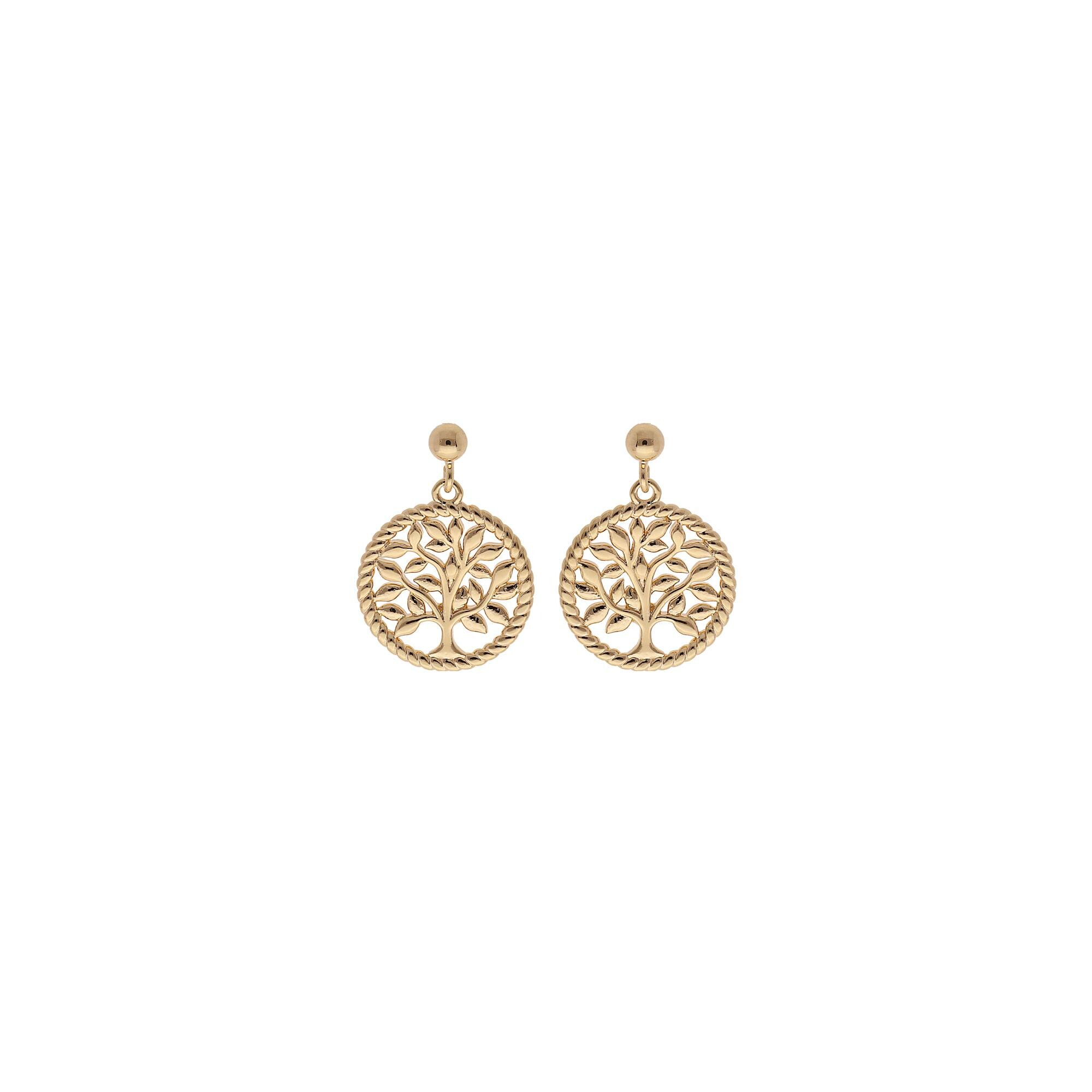 Boucles d'oreilles tige plaqué or arbre de vie 17mm contour perlé