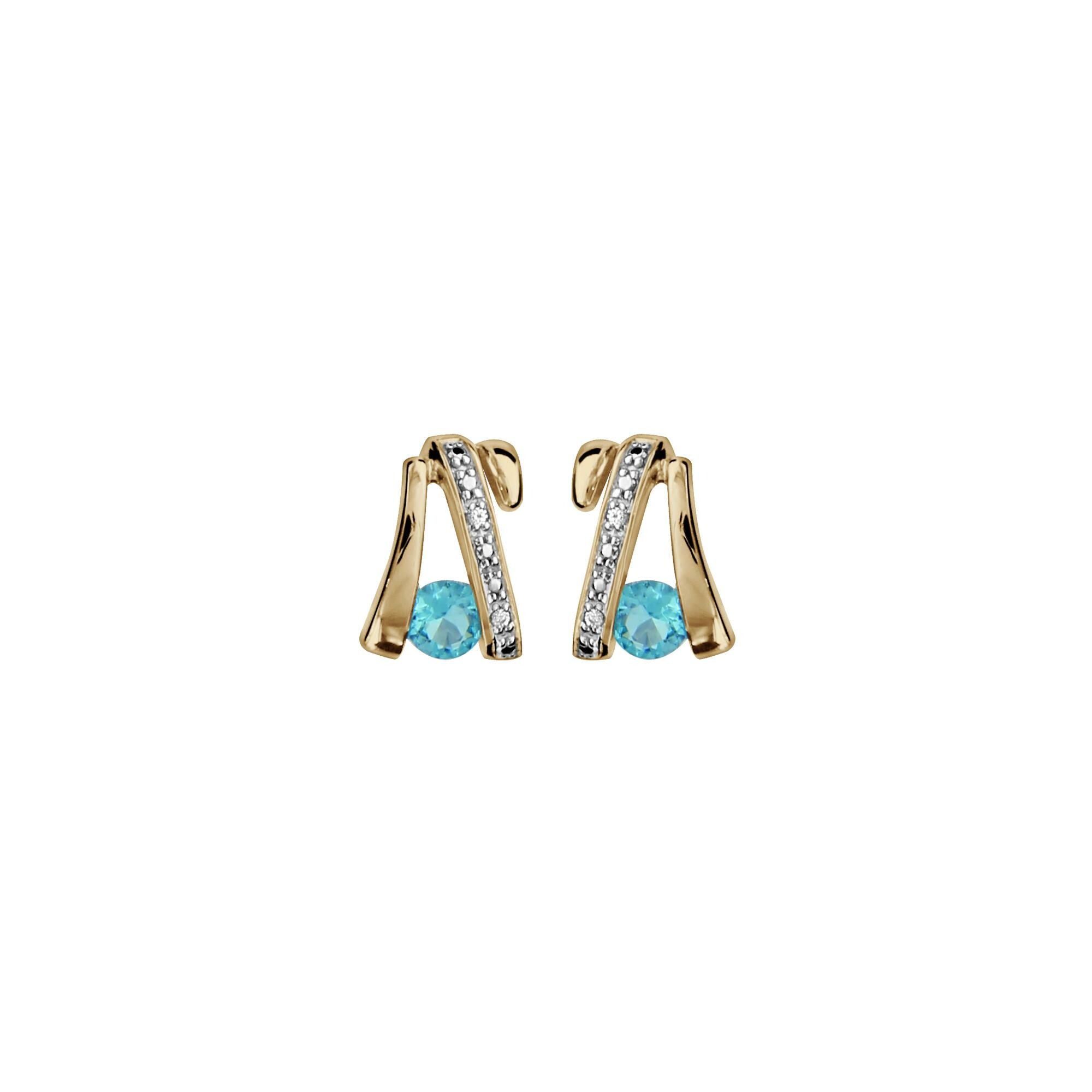 Boucles d'oreilles tige plaqué or oxydes blancs sertis et pierre ronde bleu ciel synthétique