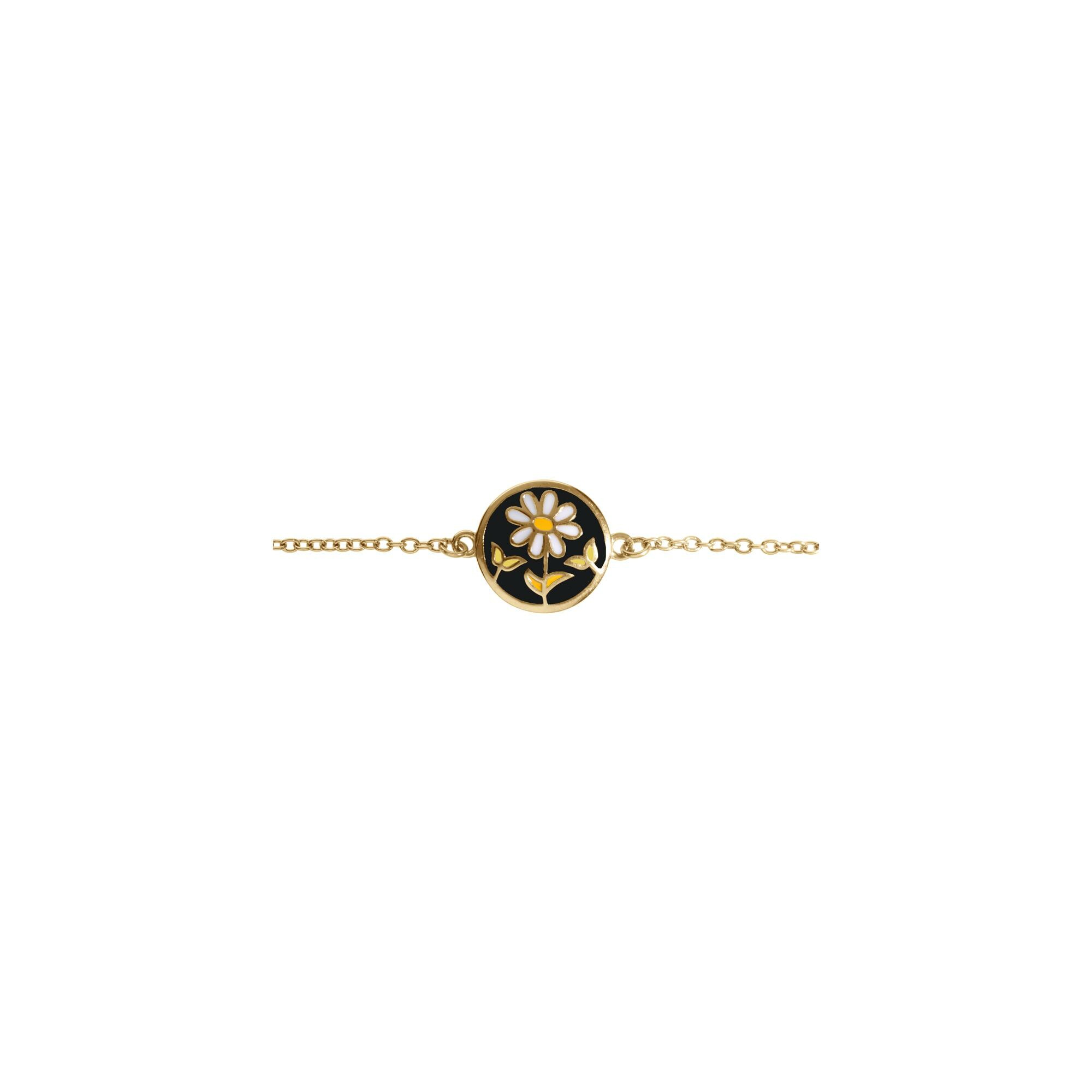 Bracelet acier doré jaune stella mia rond résine noire avec fleurs 16+3cm