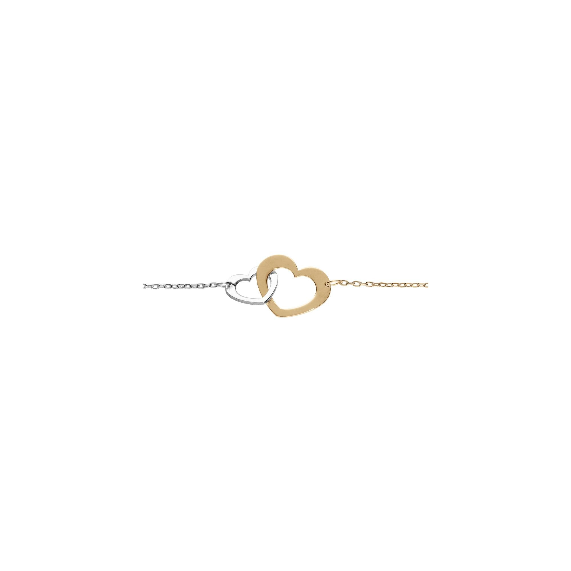 Bracelet argent et dorure jaune double coeur 16+3cm