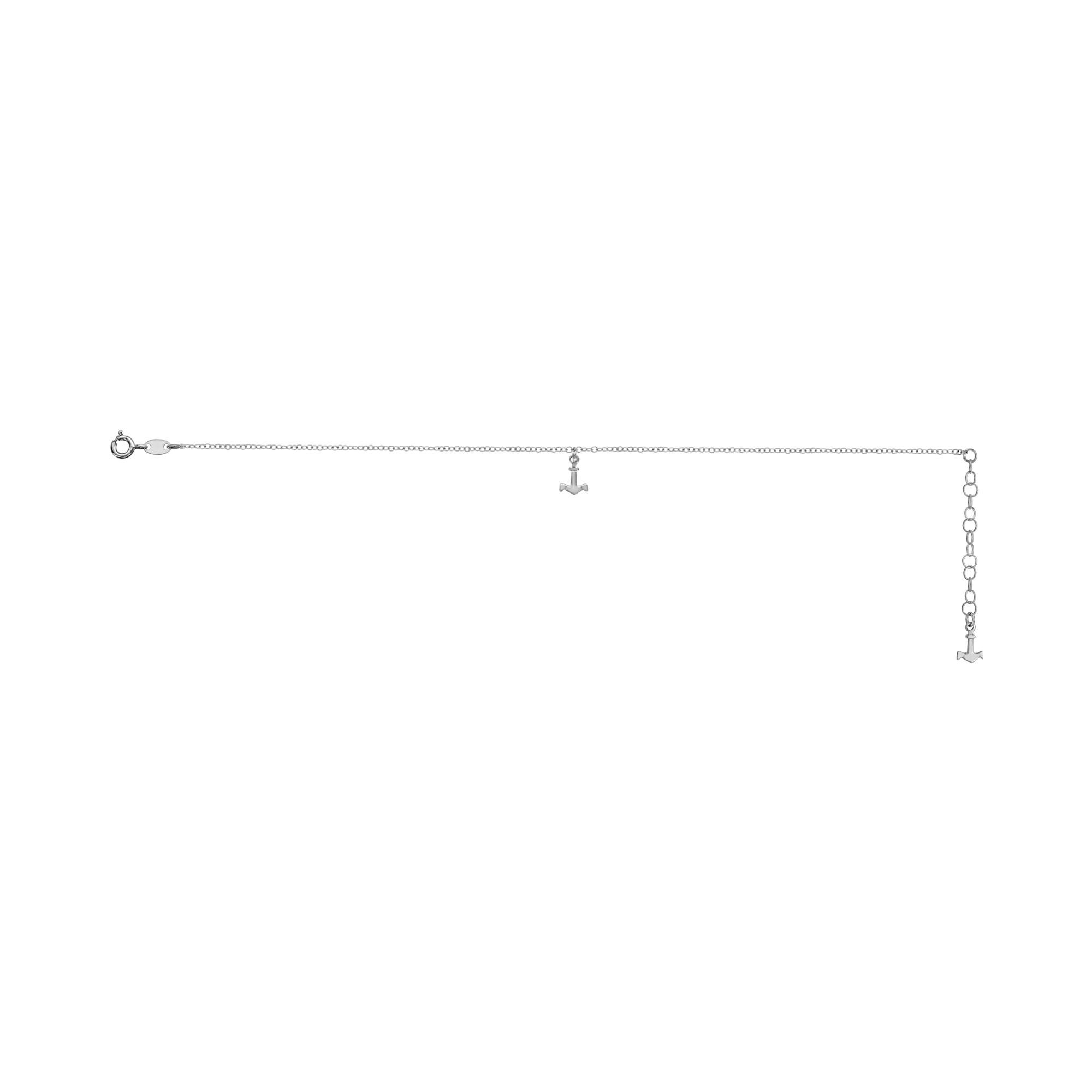 Chaîne cheville argent rhodié pampille ancre marine 22+4cm