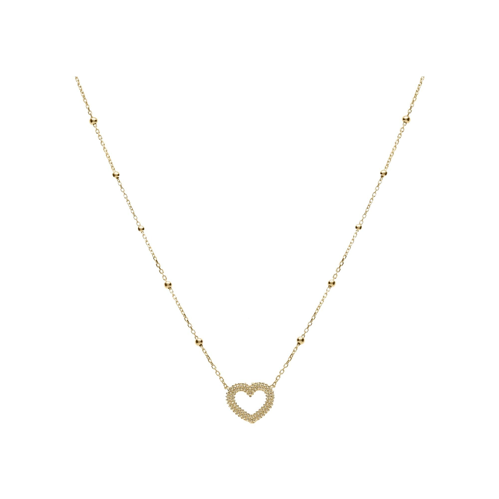 Collier argent doré chaîne boules coeur perlé 42+3cm