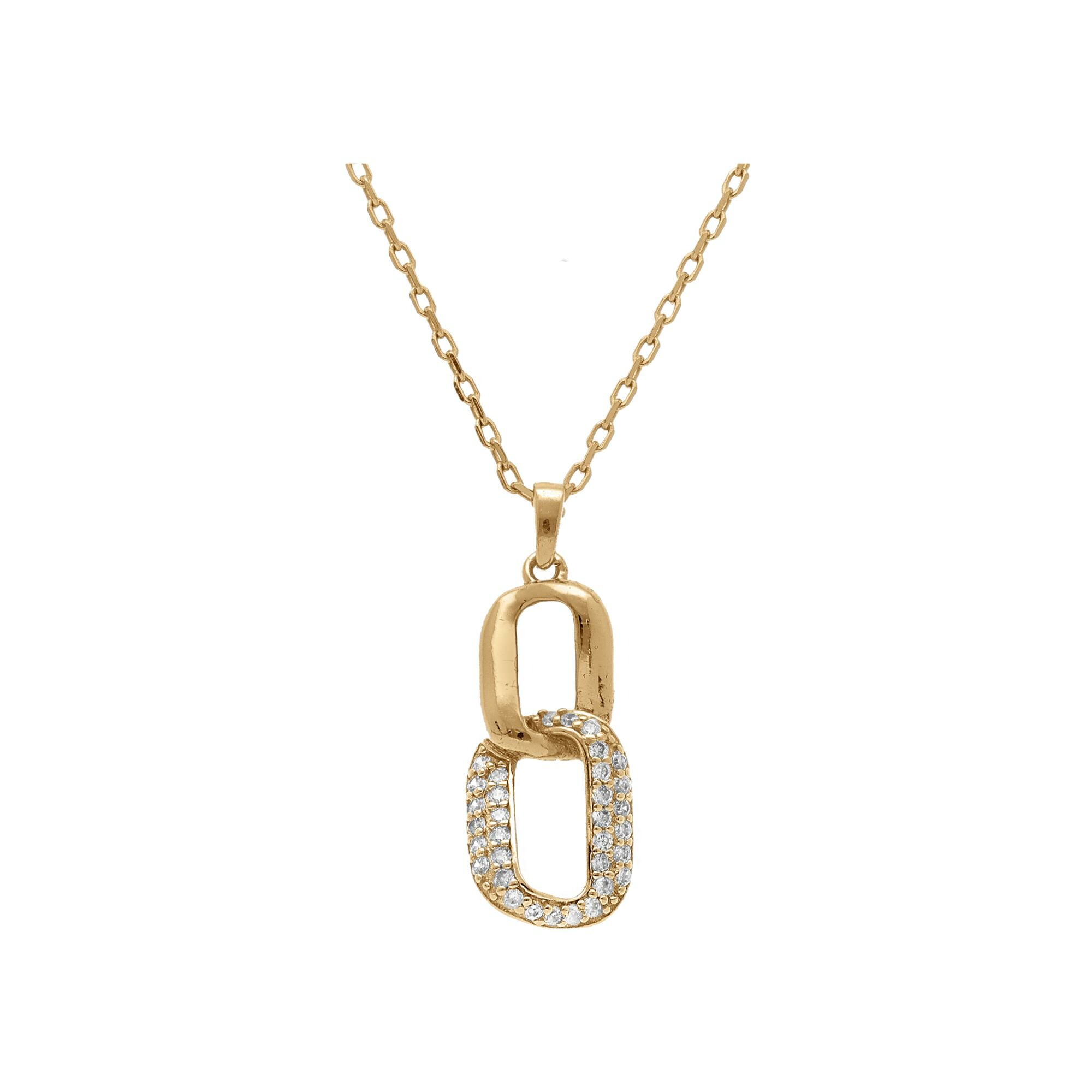 Collier argent doré pendant 2 éléments entremêlé 1 lisse et 1 contour oxydes blancs