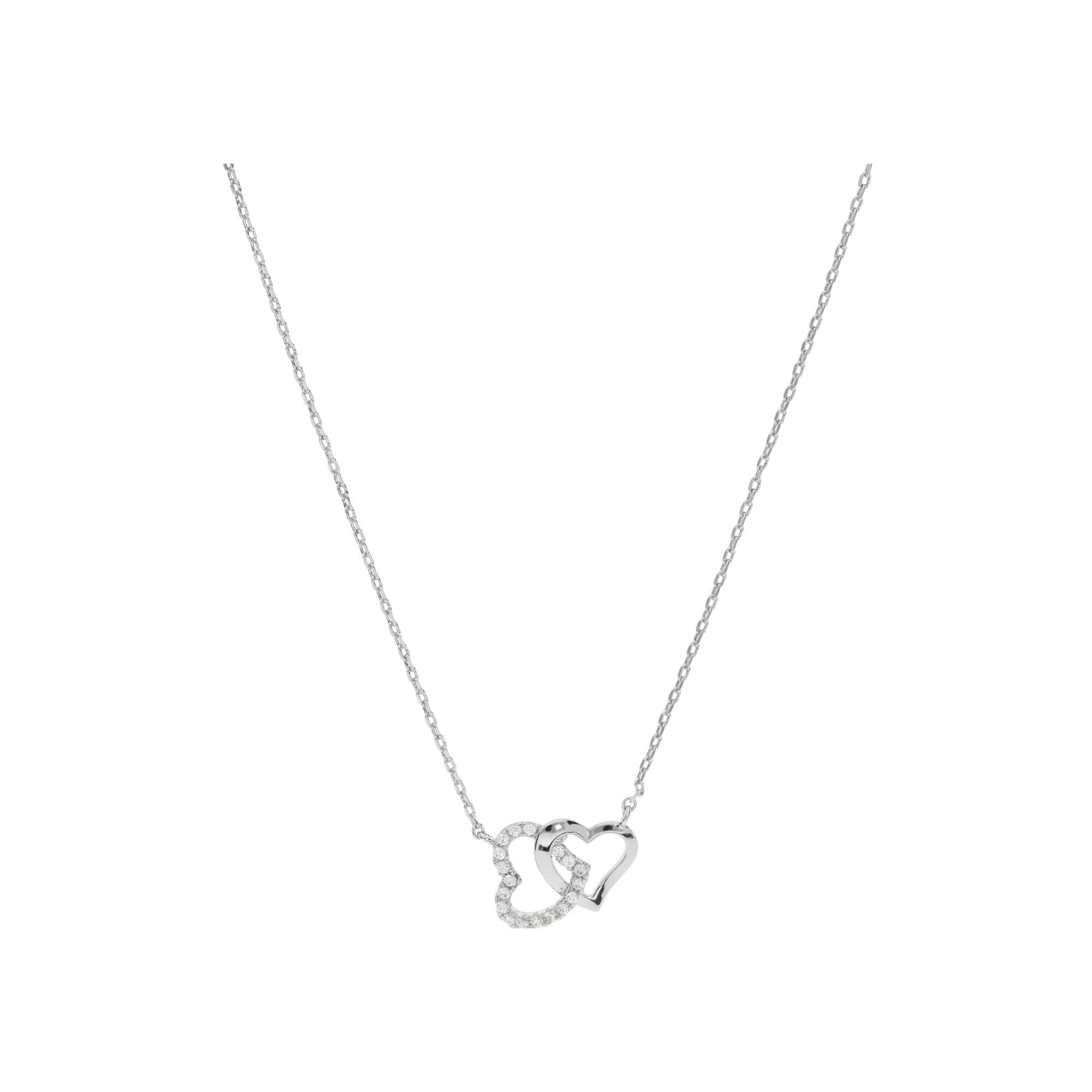 Collier argent rhodié double coeur entrelacé oxydes blancs sertis 42+3cm
