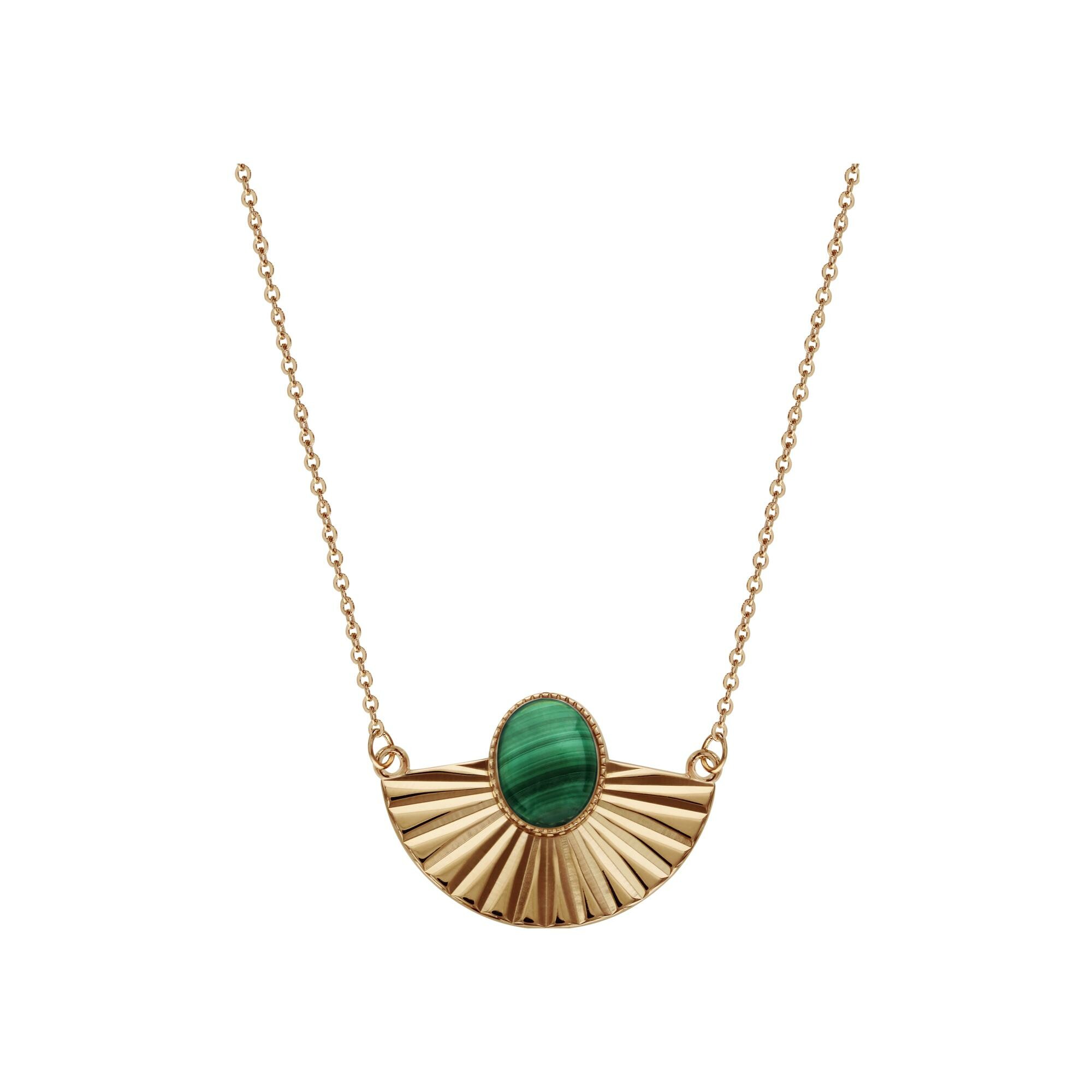 Collier plaqué or drapé avec pierre malachite 42+5cm
