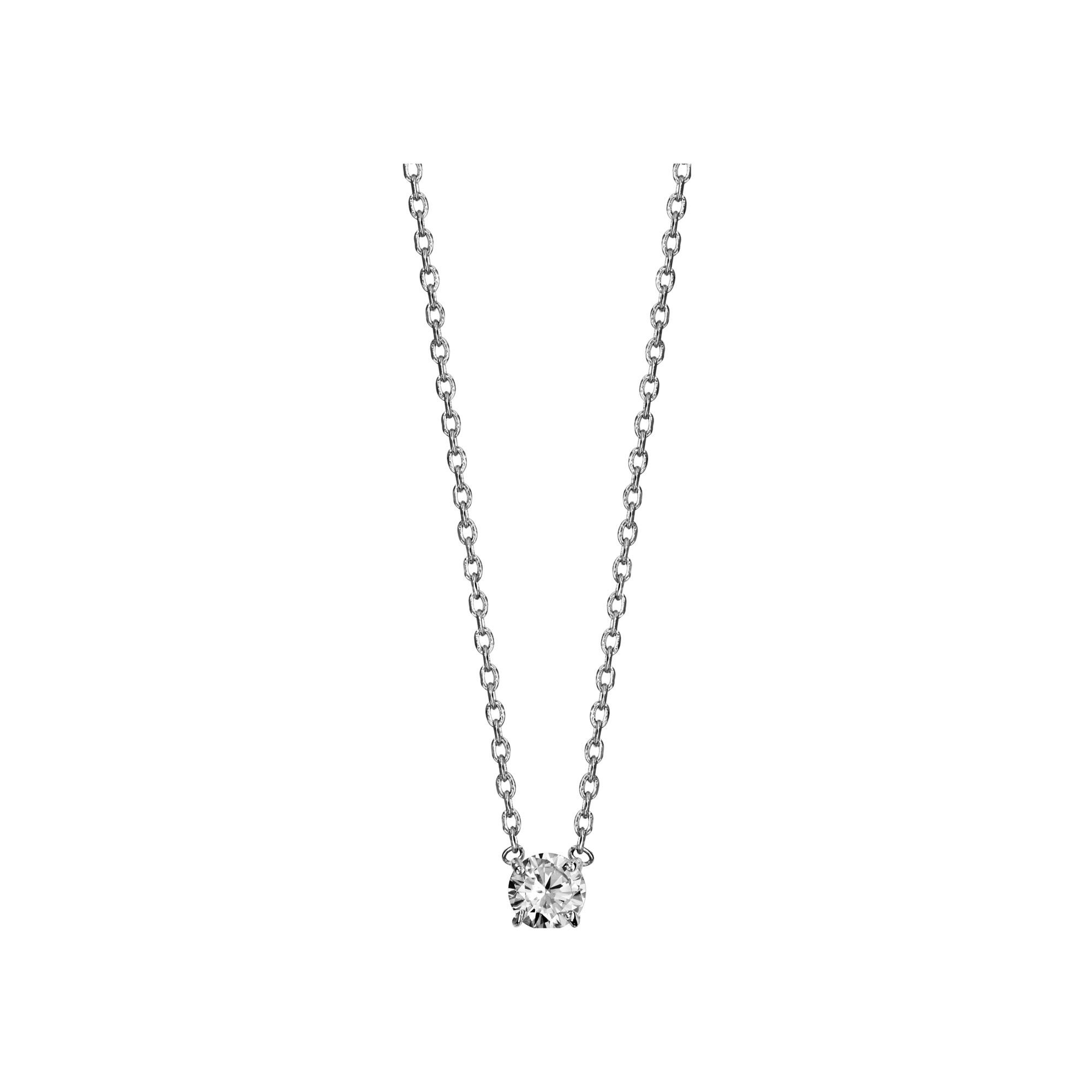 Collier solitaire argent rhodié oxyde blanc 5mm serti 4 griffes 38+4cm