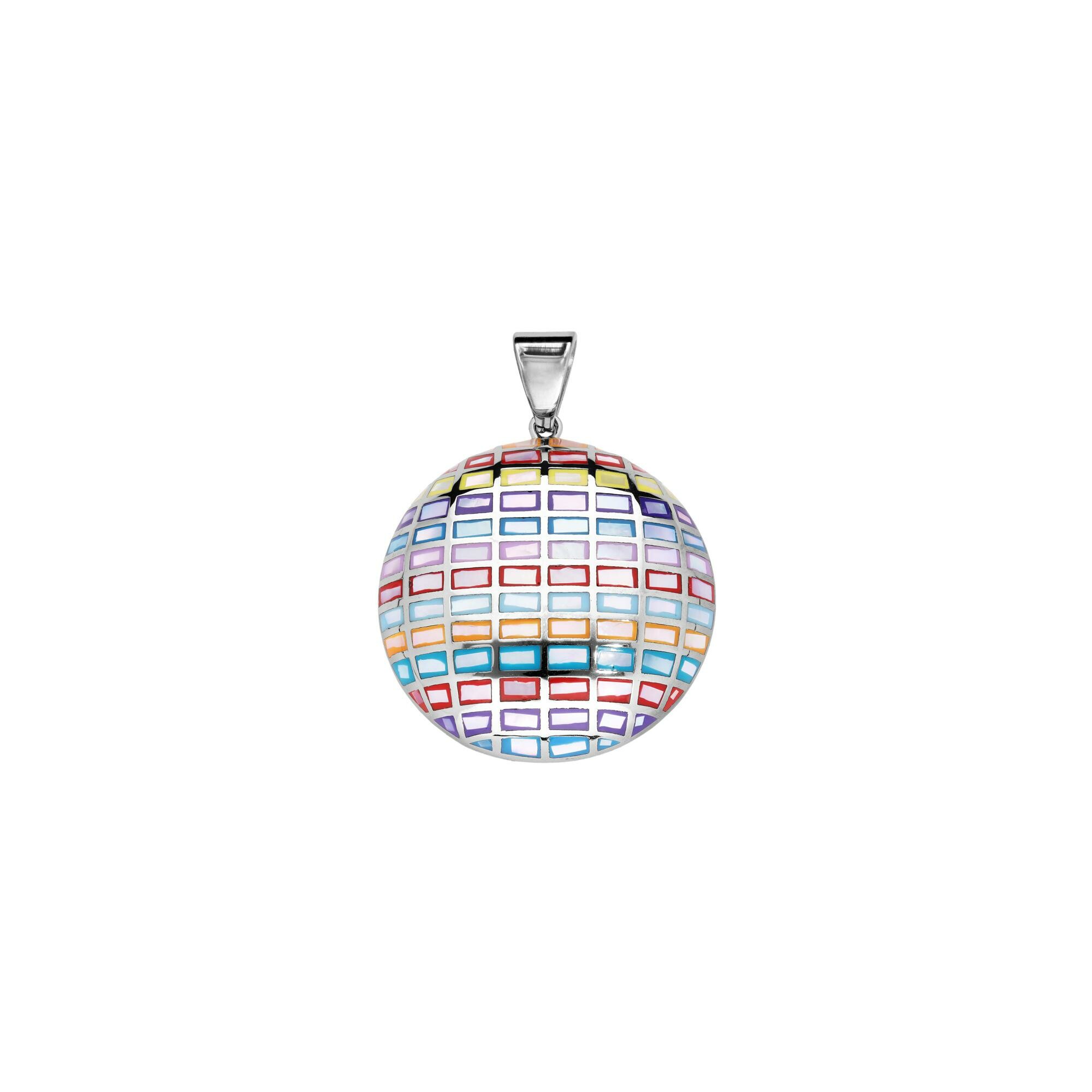 Pendentif Stella Mia rond en acier, résine multi couleur et nacre